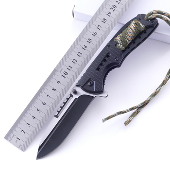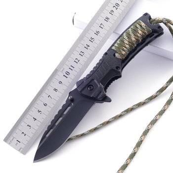Mango de acero inoxidable negro con silbato y encendedor de fuego, cuchillo plegable de bolsillo para acampar