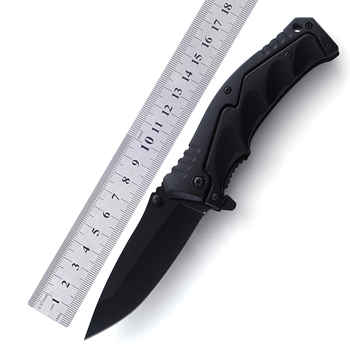 Cuchillo de bolsillo para acampada, mango de plástico negro, supervivencia