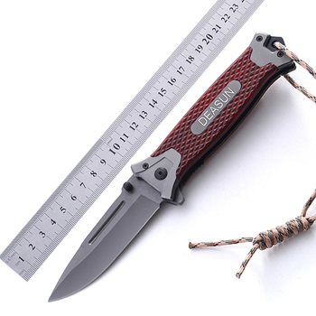 Cabeza de acero doble y madera roja Cuchillo de camping de hoja plegable 3cr13 de supervivencia de acero inoxidable